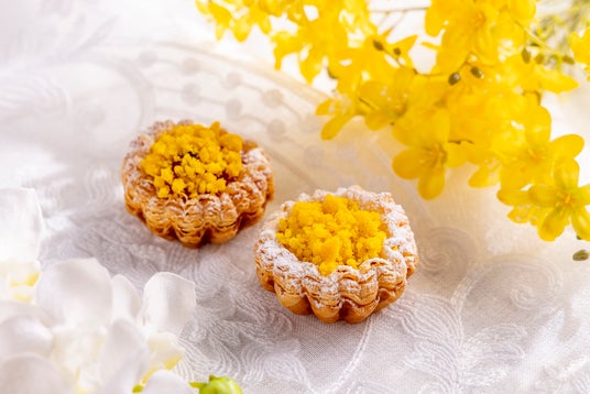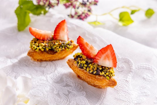 クロワッサン生地で器を作り苺風味のフランと共に焼き上げた「苺のフラン レモンクランブル」はミモザをイメージしたレモン風味のクランブルがアクセントに。桜の塩漬けを練り込んだスコーンに苺のジャム入りクリームチーズと粒あんをサンドした「桜のスコーンサンド」は桜の香りと塩気が苺ジャムや粒あんの甘さに絶妙にマッチし、一口で春の華やいだ気分を感じさせる一品です。