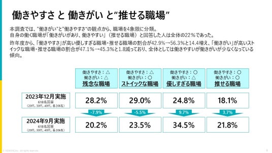 そこで、今回(2024年9月)の調査では、昨年度からの変化と共に、”推せる職場”とは具体的にどのような印象があるのか、ランキング等から明らかにしています。