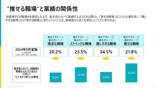 働きがい×働きやすい=『推せる職場』 仕事の成果にも繋がり、転職意向も低いことが明らかに