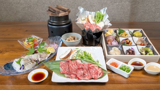 とろけるような淡路牛のしゃぶしゃぶに、新鮮な魚介の刺身、香り豊かな釜めし、彩り豊かな八寸など、島のごちそうをたっぷり味わえるボリューム満点の御膳です。
