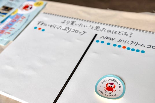 プログラム内での現地フィールドワークやオンラインミーティングなどを経て、最終的に「かに屋さんが本気でつくるカニクリームコロッケをつくろう!」と、プログラム最後の成果発表イベントでは試食会イベントを開催。カジマを代表する「ずわいがにたっぷりコロッケ」との食べ比べを実施し、試食者69名中54名が「カニクリームコロッケをより買いたいと思った」という結果になりました。