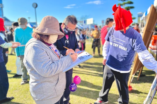 プロジェクトチームは大洗クエストが出展したブースで「かに調査大作戦」と題して、販売の告知とカニクリームコロッケを購入した方へのアンケート調査を実施。2日間で161名に告知、61名にアンケート調査を行い、製造したカニクリームコロッケ600個は完売という結果になりました。