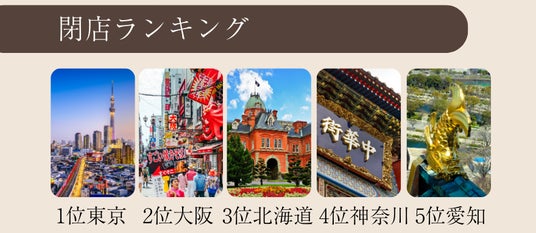 また、閉店数のトップも東京(1,808件)と大阪(916件)、続いて神奈川、埼玉、兵庫といった主要都市が上位に並んでいます。開業が多い=競争が激しい地域でもあり、事業環境の厳しさが反映されていると考えられます。