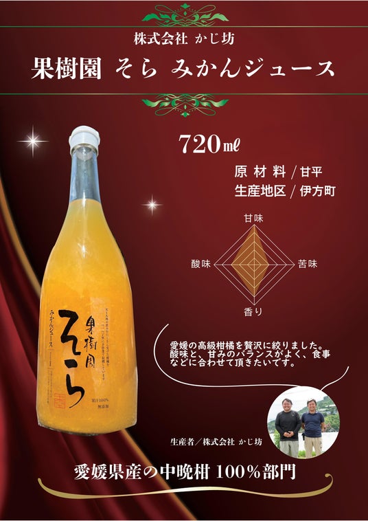 BRONZE AWARD:果樹園 そら みかんジュース ※原材料:甘平(株式会社かじ坊:八幡浜市)