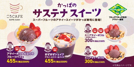「アサイースイーツ」の美味しさを味わっていただくことはもちろん、かっぱ寿司のメニューを通じて、お客様とともに、気軽に地球環境について考え、行動するきっかけになればという想いで開発されました。