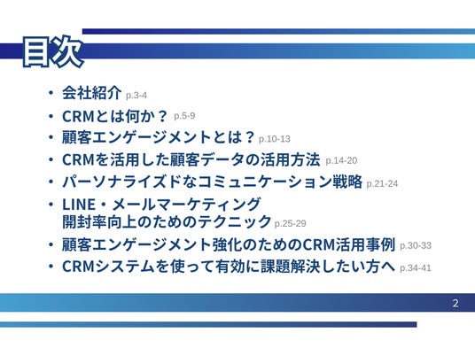 また、LINE・メールマーケティングにおける開封率向上のためのテクニックについても取り上げており、CRMを導入して顧客データの活用法を学びたいと考えている方や長期的な顧客関係を構築したい方にはおすすめの内容です。