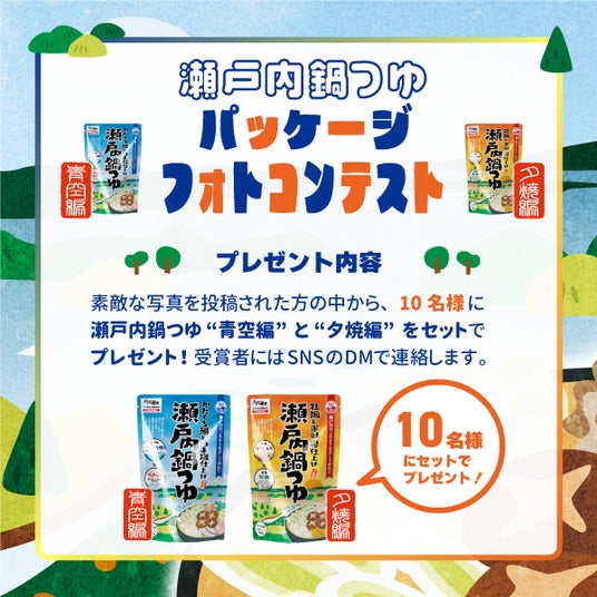 景品: 優秀作品をご提出いただいた方10名に「瀬戸内鍋つゆ“青空編”と“夕焼編”のセット」をプレゼント