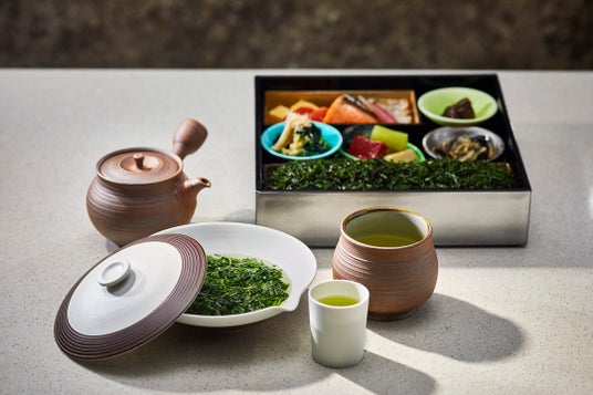 山本山が厳選した海苔を主役にしたお食事と、山本山の高級玉露「上喜撰」2煎と、煎りたての「玉露 雁が音ほうじ茶」とともにお楽しみいただけます。飲み終えた玉露の茶葉はお召し上がりいただけます。