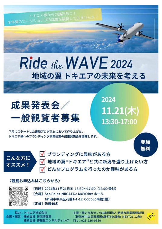 ブランディングに興味がある方、地域の翼“トキエア”と共に新潟を盛り上げたい方、新潟のビジネスの未来を担う次世代リーダーの方、起業をお考えの方、どんなプログラムを行ったのか興味がある方!