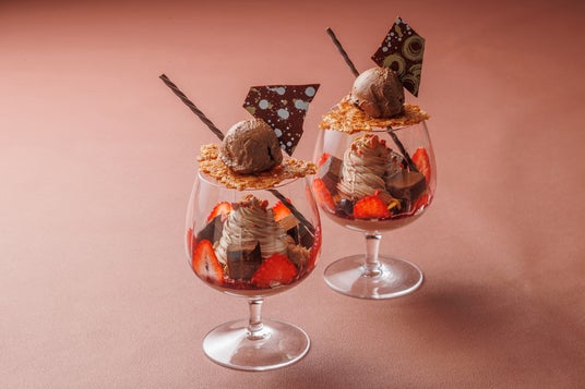 パフェとスイーツは、ショコラを存分にお楽しみいただける仕上がりです。チョコレートのパフェは、フランボワーズやイチゴなどを使ったベリージュレにフランス産高級チョコレート「ヴァローナ」のカカオ61%のビターチョコレートを合わせました。大人な味わいをご堪能ください。スイーツの一つブリュレのムースは、クレームブリュレを一度崩してムースにし、その間にキャラメリゼしたリンゴを挟んだ手間と工夫が詰まった一品です。