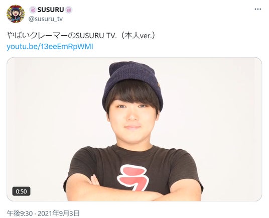 2021年、あるネットユーザーが遊び心でXに投稿したパロティネタ、「やばいクレーマーのSUSURU TV.」が、SNS上でバズリ、多くのネットユーザーや著名人、そして本人も乗っかり、ネットミームとしてSNSを席巻し、「ネット流行語100」にもノミネートされました。