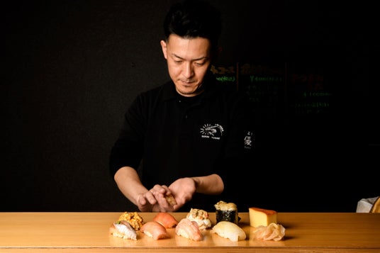 「ミシュランガイド北陸2021特別版」で2つ星を獲得した〈すし処 めくみ〉の山口尚享大将が監修する北陸初の立喰い鮨店〈立喰い鮨 優勝〉が伊勢丹新宿店に初出店。魚は料理人から絶大な支持を誇る、能登町の漁師から仕入れており、高品質な鮨をカジュアルに食べられる人気店です。今回のイベントでは、鮨職人がその場で握る、旬の魚介をふんだんに使った<にぎりコース>と<おつまみコース>をご用意。ドリンクは北陸の地酒を中心とした日本酒を提供します。※写真は一例です。