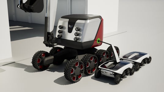 「YPV-C」(City)では、今後増えると考えられるリノベーションや屋内作業を見据えて建機の電動化を進めます。災害時にはいち早く現場への移動が必要となるため、クローラではなく走行に最適なホイール(タイヤ)を採用しています。電動化で課題となるバッテリーの持続性と給電は、自走式バッテリー車で必要なタイミングに自動給電することが可能となります。