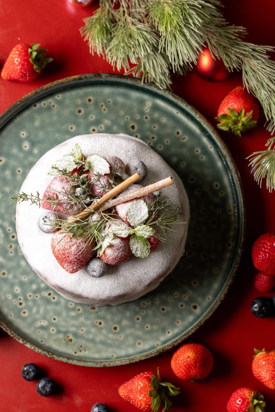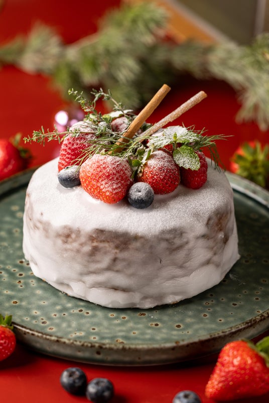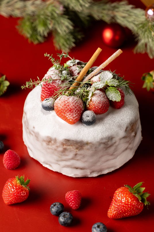 また、エースホテル京都では12月のホリデーシーズンを祝う「ホリデーケーキ」の予約を11月15日(金)から開始いたします。いちごとブルーベリーをふんだんに使用し、フレッシュな果実の甘みと酸味が贅沢に広がるバターフルーツケーキは、ふわふわのスポンジと軽やかなクリームが果実の美味しさを引き立て、ひと口ごとに京都らしい優雅さと華やかさを感じさせる特別な一品です。提供期間は12月15日(日)から25日(水)まで。