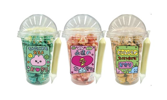 チェゴシム ぱちぱちポップコーン(3種)(ホワイトチョコ・ブルー / いちごみるく / キャラメル) 各540円