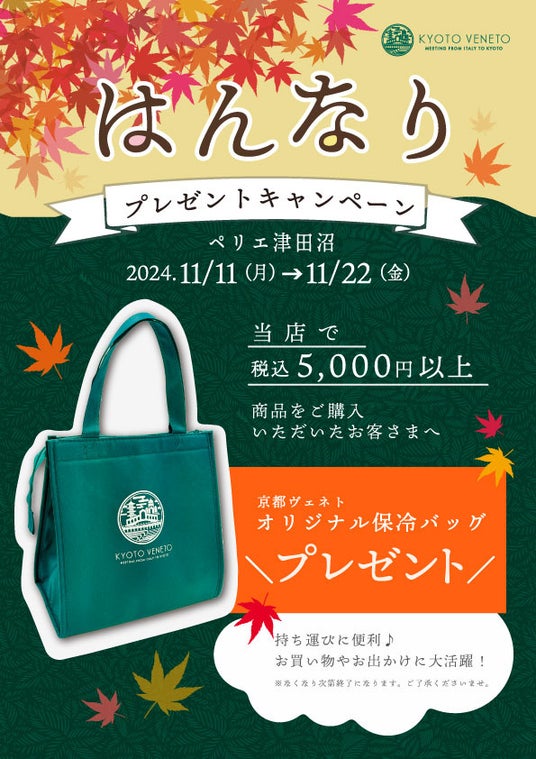 当店で税込5,000円以上お買い上げのお客様に京都ヴェネトオリジナル保冷バッグをプレゼント!