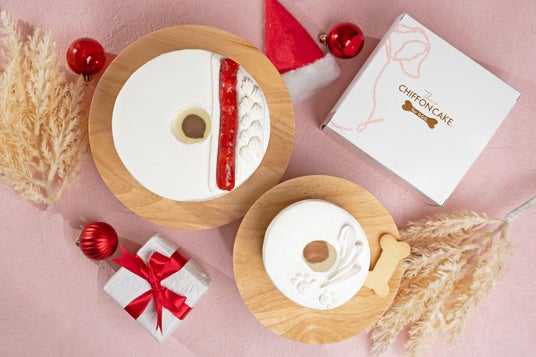 リニューアルした犬用シフォンケーキ『Shiro』と、ニットをイメージしたデザインの『CHIFFON de Noel』のセット。