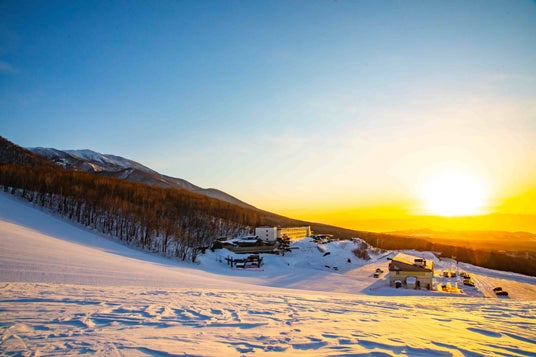 朝な夕なに変わる目の前に広がる網張の大自然 12月の後半には、遠くに見える「早池峰山」の山頂から昇る「ダイヤモンド早池峰」が見えるようになります