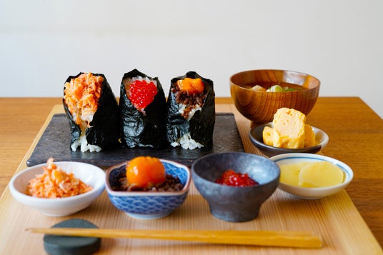 すじこ、さけ、明太子、肉そぼろ、卵黄醤油漬け、昆布、梅、塩