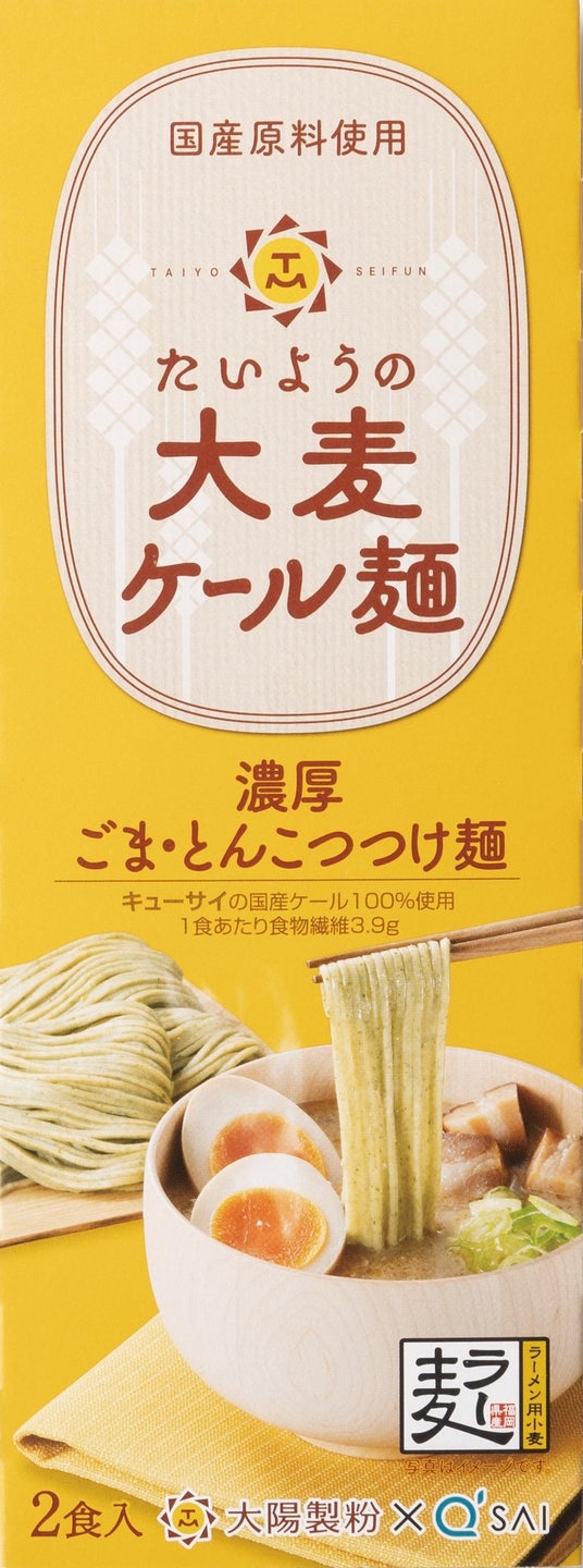 大陽製粉は創業以来81年間福岡で製粉事業を続け、九州の農家さんやお客様に支えていただき今日に至っています。この度初めて自社ブランドの商品を発売するということで、地元の九州と福岡にこだわりました。麺の原料は「福岡県産ラー麦」「九州産大麦」「福岡企業キューサイ様の国産ケール」スープは「福岡企業の松原食品様開発のオリジナルスープ」「麺製造OEMは佐賀県のヤクルト食品工業様」