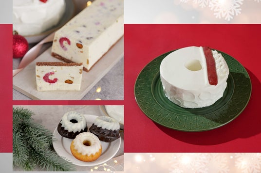 2024年のクリスマスシフォンケーキ「CHIFFON de Noel 」と、姉妹ブランド・This is CASSATA.の看板商品「The CASSATA」、焼き菓子「クグロフ」のセットです。