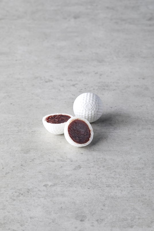 大正15年に誕生したゴルフボール形の最中。ゴルフが限られた階層だけのスポーツだった当時、斬新な和菓子として好評だったそう。中には、濃厚な味わいのこしあんがぎっしり詰まっています。