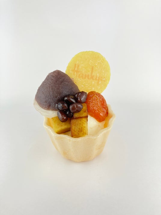 「舟和本店」舟和の芋アイス最中(1個) 605円【各日販売予定数150】色々な味と食感が一度に楽しめる、カラフルなアイス最中。HANKYUロゴの芋金貨付き。