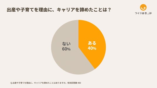 「出産や子育てを理由に、キャリアを諦めたことはありますか」という質問に対し、「ある」と回答した人が40%に上りました。出産や育児をきっかけに昇進などのキャリアの道から外れてしまう現象は「マミートラック」と呼ばれています。