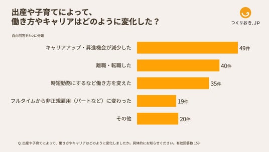実際に、出産や子育てをきっかけに働き方やキャリアがどのように変化したかを尋ねたところ、「キャリアアップ・昇進機会が減少した」「離職・転職した」といった回答が多く寄せられました。さらに、自由回答では、仕事への意欲はあっても子育てを理由にポジションを外される、周囲から目に見えないプレッシャーを受ける、正社員でないために育休制度を利用できず退職を余儀なくされるといった、仕事と育児の両立がいかに難しいかを示す声が数多く見られました。