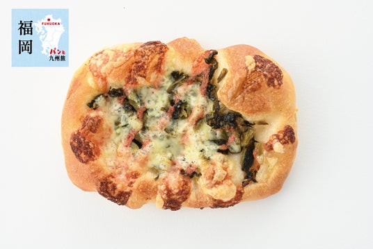 乳酸発酵させた高菜に、白ごま、唐辛子、にんにくなどで味付けした高菜漬け。博多明太子をのせて焼き上げました。