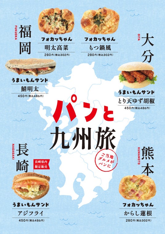 ※「うまいもんサンド アジフライ」は長崎県店舗で以前から販売中。今回ネーミングを変え当シリーズに仲間入りしました。