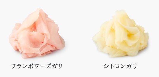 FUTABAオリジナルのガリ世界中どこにもない、フランボワーズ(ラズベリー)と、シトロン(レモン)で味付けしたガリ
