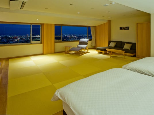 【客室】琉球畳の和モダンスタイル。お部屋からも大阪平野を一望!