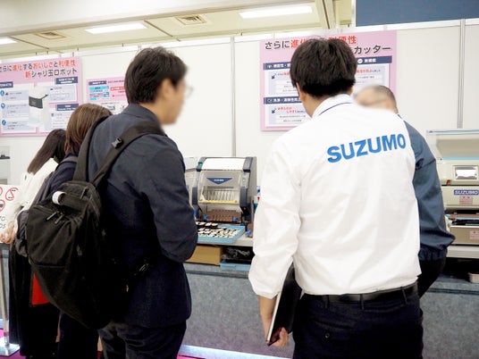 また、視覚的なボリュームとおいしさを向上させる8カットから10カットへの細切り海苔巻きカットの技術も披露し、人手では難しい正確なカットを機械で美しく仕上げる様子は多くの事業者の皆様から高い評価をいただきました。