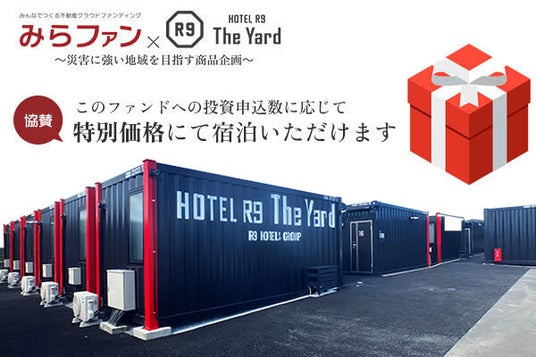 今回募集を開始した「みらファン第14号」は、9月の第11号、10月の第12号に引き続きR9 HOTELS GROUPとのコラボ第3弾。対象物件である「HOTEL R9 The Yard 坂出」は、通称「コンテナホテル」と呼ばれる、建築用に開発した専用のコンテナモジュールを利用した「HOTEL R9 The Yard 」シリーズ。