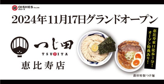 オイシーズ株式会社(所在地:東京都千代田区、代表取締役:工藤 智)傘下の株式会社 H.I.T WORLDは、「つじ田」恵比寿店を東京都渋谷区恵比寿1丁目に2024年11月17日(日)にオープンいたします。
