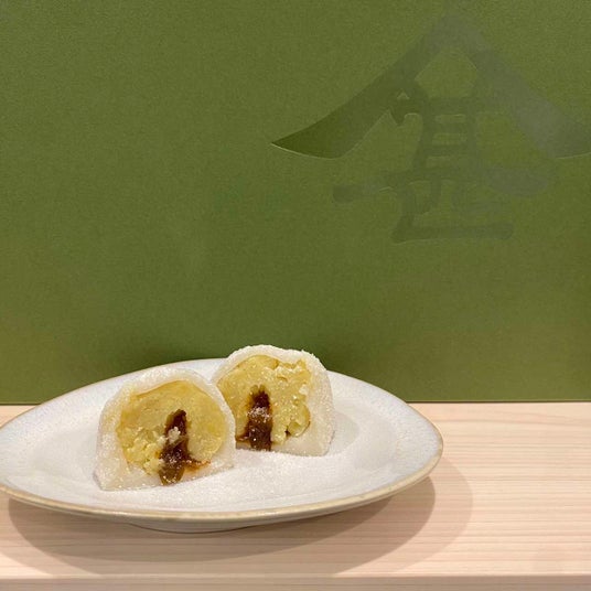 絹のような滑らかさと甘さが魅力のさつまいもを使用。求肥の中には、秋田の会員制料亭「日本料理