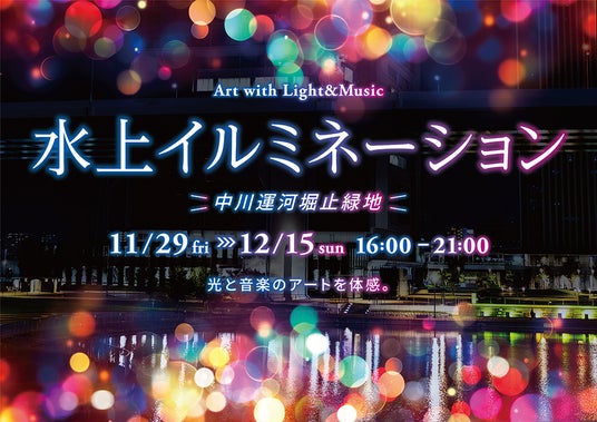 堀止緑地西側の水面に光るボールを配置。ボールは音楽にシンクロして光り方を変え、周辺に設置した照明で水上に描く光と合わせて、音楽と光のショーをお楽しみいただきます。普段は真っ暗な堀止緑地が一時、幻想的な空間に生まれ変わります。12/13(金)~15(日)の3日間は、光の衣装を纏ったダンサーが水上で光のショーを行います。(光のショー:約20分間/1日3回(予定))
