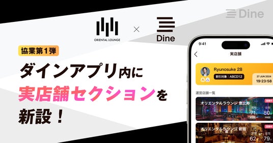 この度、M&A後初となる両社の取り組みを開始します。本取り組みにより、ダインアプリ内に「オリエンタルラウンジ」及び「ag」専用セクションを設置、ダイン月額会員のお客様の店舗利用時に割引サービスを実施いたします。