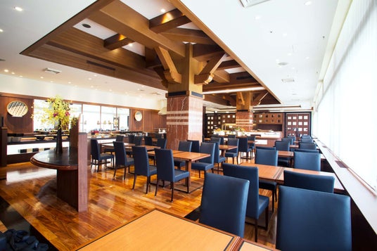 お寿司や熱々のグリルなど、実演が人気の「ランチブッフェ」は毎日開催しております。落ち着いた店内には広々とした個室もあり、ランチ女子会や会議でのご利用も可能です。(席数:78席)