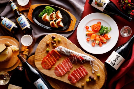種類豊富なお酒にはこだわりのお料理が欠かせません。シェフが本プランに合わせてお酒に合うメニュー全14品を考案しました。中でもおすすめなのが5種類の実演メニューです。フランスの伝統的な製法で作る生ハム「ジャンボン」をはじめ、専用の機材を用いて薄い花びらのように削るウォッシュチーズ「テテドモアンヌ」や、人気のブランドポーク「黄金豚」のグリル、道民に根強い人気の老舗餃子メーカー「宝永」の熱々餃子をご用意いたします。さらにはデザートにコアントローやアマレットを利かせた大人な味わいの「クレームブリュレ」もございます。他にも、「スモークサーモンとクリームチーズのコルネ 余市のからすみ北琥珀の香り」や「シャルキュトリー盛り合わせ」「ピッツァマルゲリータ」などのお料理や、「ほんのり塩をきかせたバスクチーズケーキ」「お好みのリキュールをかけていただく小林牛乳のソフトクリーム」「ショコラテリーヌ」など、贅沢な味わいのデザートが揃います。美味しいおつまみ、料理でお酒が進むこと間違いなしです。多彩なお酒と合わせて、自分好みのペアリングをお楽しみください。