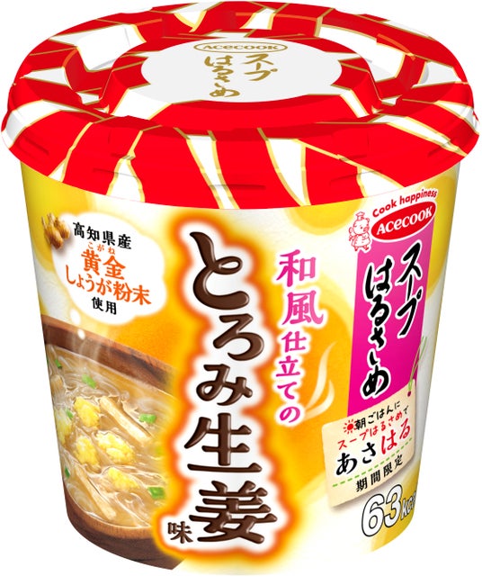 「スープはるさめ」ブランドから朝にピッタリな新商品を開発しました。こだわり素材である高知県産黄金しょうが粉末を使用したとろみのあるスープは、寒い朝に冷えたカラダをじんわり温めてくれる一杯です。