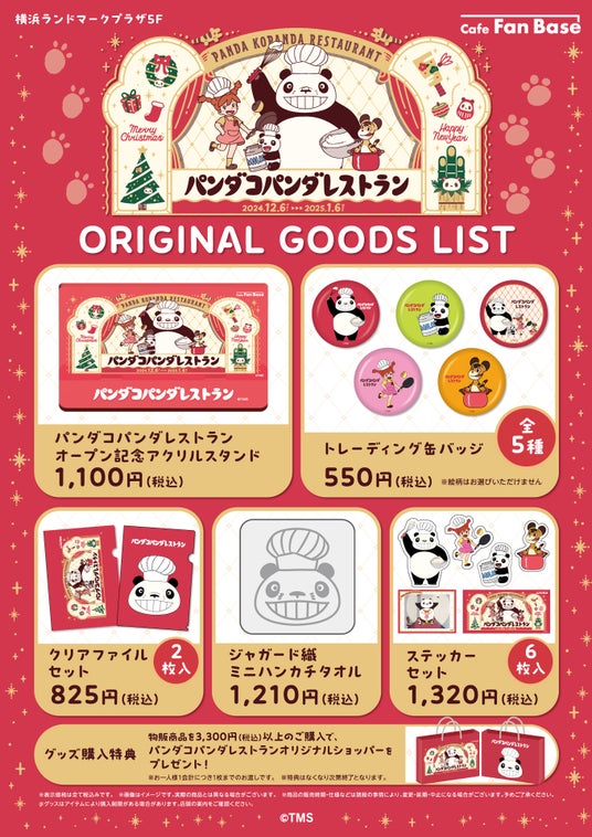 横浜みなとみらい・ランドマークプラザ5階にあるコラボカフェ「Cafe Fan Base(カフェ ファンベース)」で2024年12月6日(金)~2025年1月6日(月)の期間限定で「パンダコパンダレストラン」をオープンします。