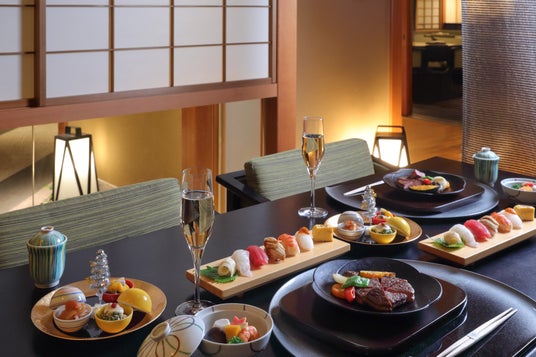和牛フィレ肉の鉄板焼をメインに、茶碗蒸しやにぎり寿司など人気料理を取り入れた会席です。落ち着いた設えの店内で、ゆったりと寛ぎながらお食事を楽しみたいという方におすすめです。
