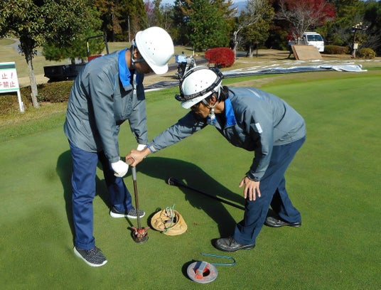 入国後講習が終了した後は当社の8つのゴルフ場へ配属されます。主にコースのセッティング、メンテナンスなどのコース管理業務を習得していただきます(写真は過去の実習風景)。