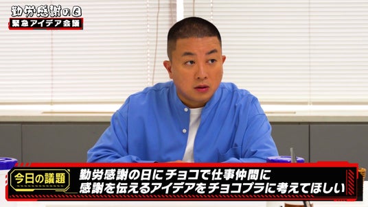 (松尾さん)今日僕は何をすれば?(ロッテ社員)勤労感謝の日にチョコで仕事仲間に感謝を伝えるアイデアをチョコプラさんに考えていただきたいと思い、お呼びしています。