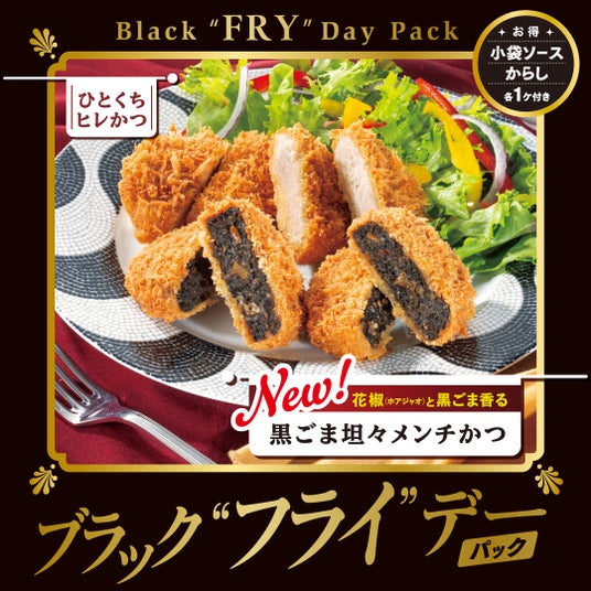 「黒ごま坦々メンチかつ」は、さぼてん定番の「ひとくちヒレかつ」とセットになった、「ブラック“フライ”デーパック」でもお楽しみいただけます。いつもの食卓の雰囲気をガラッと変えることができる、おすすめのセットです。