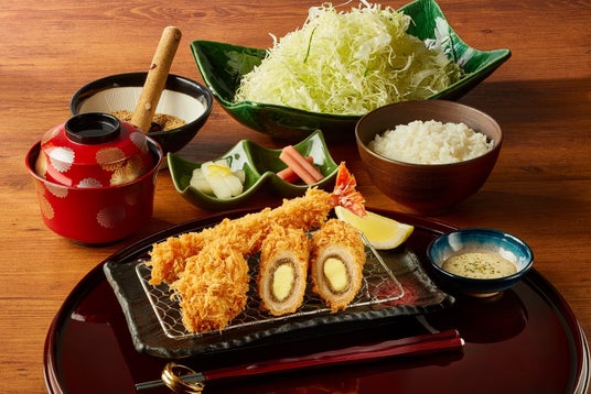 レストラン店舗で限定販売されるのは、さぼてん屈指の大人気巻きかつ「黒胡椒チーズ巻きかつ」と期間限定の「大粒カキフライ」、定番の「大海老フライ」がセットになった、「ブラックペッパーカキフライデー御膳」。「黒胡椒チーズ巻きかつ」は、スパイシーな黒胡椒とチェダーチーズのバランスが特徴で、根強いファンが多い“手巻き”のかつです。このたびブラックフライデーにちなんで、さぼてんの人気メニューを一度に楽しめる、ありそうでなかった特別セットが登場しました!