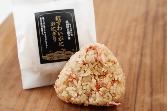また、なまはげまんと同時に開発していた「ベニズワイガニおにぎり」も11月11日(月)からはふるさと納税返礼品として寄附受付を開始しました。こちらの商品はベニズワイガニのむき身と市内産あきたこまちや調味料を使用した炊き込みご飯をおにぎりにした自信の逸品です。同じ土地で生まれたモノたちのベストマッチが味わえます。