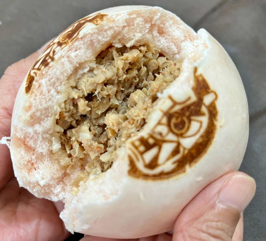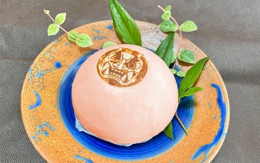 【赤】は豚肉にベニズワイガニを混ぜ込み、皮も赤く色づけ、割った瞬間にカニの香りが広がります。【青】は皮にギバサの粉末を練り込み、食べた後に磯の香りを感じる「肉まん」になりました。2種類ともに天面になまはげの刻印を押し、お土産として買って帰ることもできる商品です。